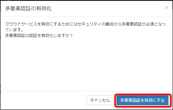[2] 「多要素認証を有効にする」のボタンをクリックします。